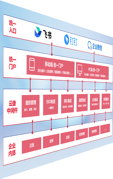 对协作平台提供支持服务,,,,支持企业应用与协作平台对接,,,包含组织同步、、、消息集成、、待办集成等。。。。支持目前主流的协作平台:钉钉、、、、企微和飞书。。。